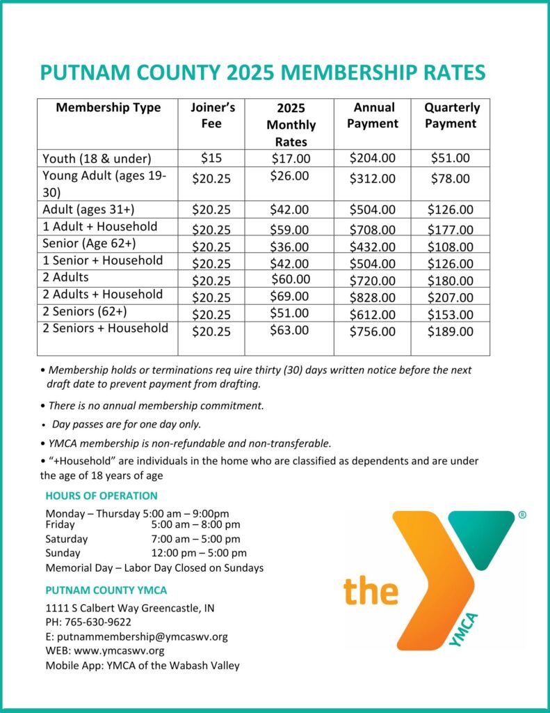 Putnam County YMCA opened in March 2025. The facility was built in partnership with the YMCA of the Wabash Valley and the Putnam County Hospital. This project fulfills a multi-decade dream of the community.